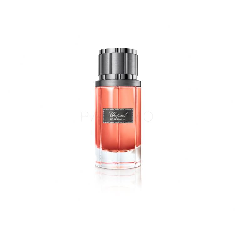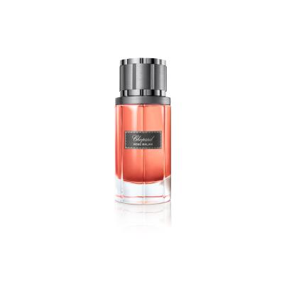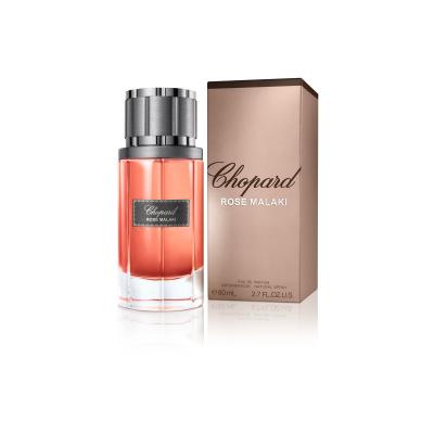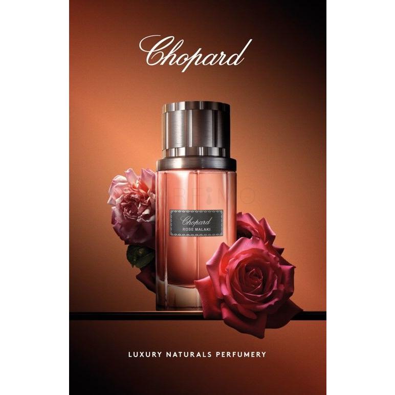 Wir verlocken Sie zu einer Duftreise in den Orient…? Das Eau de Parfum Chopard Malaki Rose (2014) ist ein perfektes Werk der schweizerischen Juwelier- und Parfummarke Chopard. Es betont Ihr Charisma mit einem wunderschönen Parfum und dank dem gelungenen Design brilliert es auch in Ihrem Wohnungsarrangement. Um seine Komposition hat sich die erfahrene Parfümeurin Amandine Clerc-Marie verdient gemacht. Obwohl überwiegend ein Rosenduft, das Eau de Parfum Chopard Malaki Rose bietet einen pikanten holzigen Charakter – mit metallischen, ledrigen und tabakartigen Untertönen. Aus diesem Grund fesselt das Parfum neben der Frau und den Mann – den zeitgenössischen Gentleman, der gerne seine Kraft und Entschlossenheit, sowie seine Zartheit und Galanterie zeigt. Bringen Sie sich mit Ihrem Partner zu besonderen Events sowie in romantischen Augenblicken mit demselben Duft – dem Eau de Parfum Chopard Malaki Rose in Einklang!