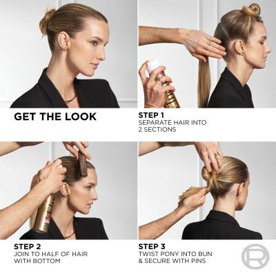 Aus 20 cm Abstand auf die konkrete zu festigende Partie der Frisur oder auf die ganze Frisur sprühen.