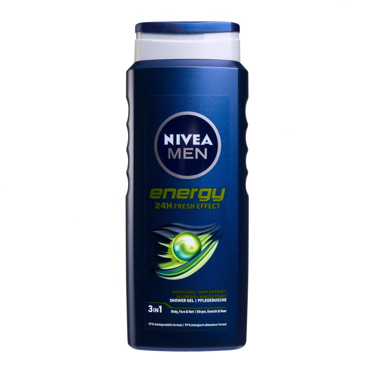 Erleben Sie mit dem Duschgel für Männer Nivea Men Energy eine energetisierende Erfrischung. Das Duschgel wäscht abgelagerte Unreinheiten und Talg von der Haut im Gesicht, am Körper und aus den Haaren aus. Im Duschgel ist Minzextrakt enthalten, der den Geist belebt und Ihnen eine langfristige Frische sichert. Das Duschgel hinterlässt auf Ihrer Haut einen angenehmen maskulinen Duft.