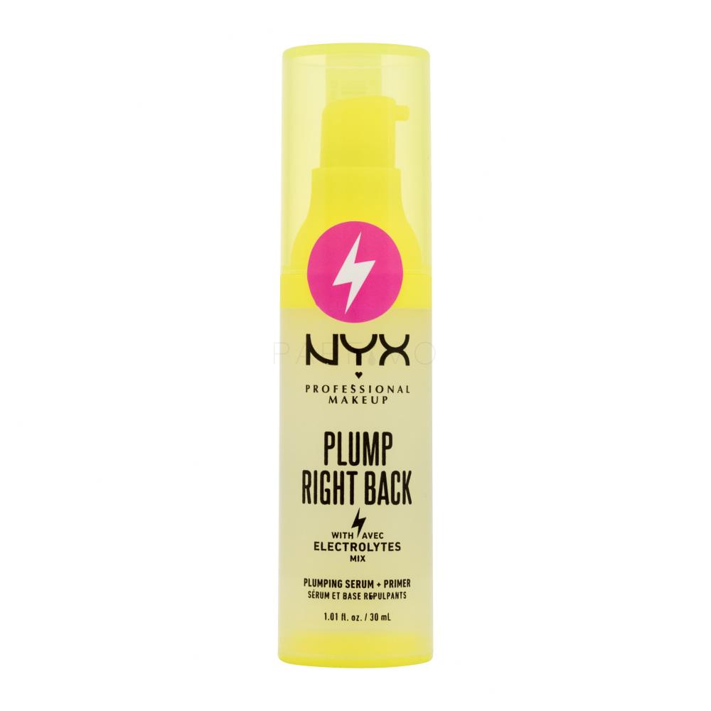 Halten Sie Ihr Make-up den ganzen Tag lang in einem perfekten Zustand und verwöhnen Sie Ihre Haut mit der feuchtigkeitsspendenden Pflege des aufhellenden Primers NYX Professional Makeup Plump Right Back Plumping Serum + Primer in Form eines Serums.